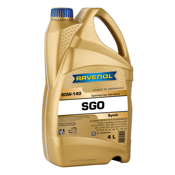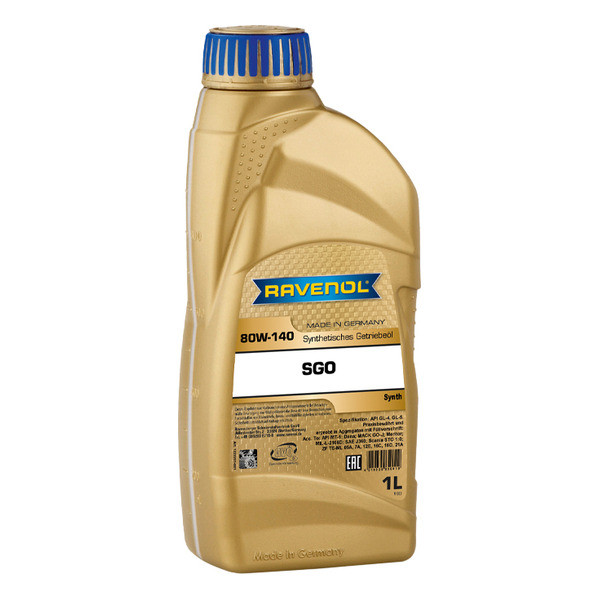RAVENOL SGO SAE 80W-140 GL-5 – Լիովին սինթետիկ փոխանցման յուղ մեծ բեռնված հիպոիդ փոխանցման տուփերի համար, որոնք հիմնված են բարձրորակ սինթետիկ բազային յուղի վրա՝ հակամաշվածության հավելումների հատուկ համալիրի (EP) ավելացմամբ: