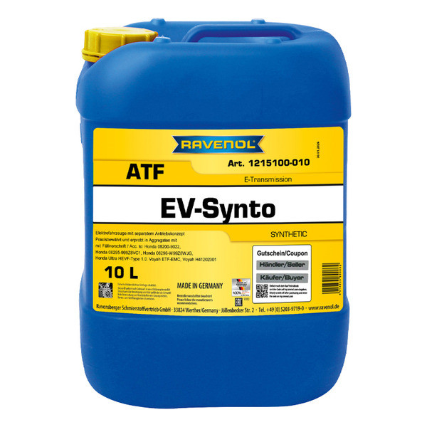 RAVENOL EV-Synto ATF E-Transmission Fluid идеально подходит для круглогодичного использования во всех современных электромобилях. Специальный пакет присадок соответствует требованиям многих ОЕМ.